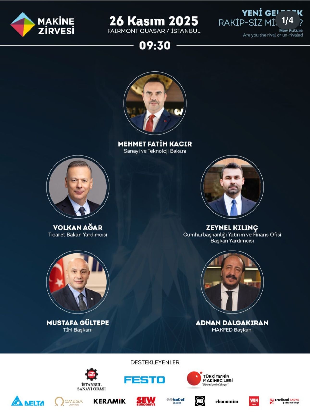 Türkiye Makina Federasyonu (MAKFED) tarafından, makine sektörünün küresel rekabetteki konumunu güçlendirmek ve geleceğe yönelik ortak politikalar oluşturmak hedefiyle düzenlenen Makine Zirvesi 2025, sektörün tüm paydaşlarını “Yeni Gelecek: Rakip-siz misiniz?” mottosuyla bu yıl 26 Kasım’da İstanbul’da bir araya getiriyor.