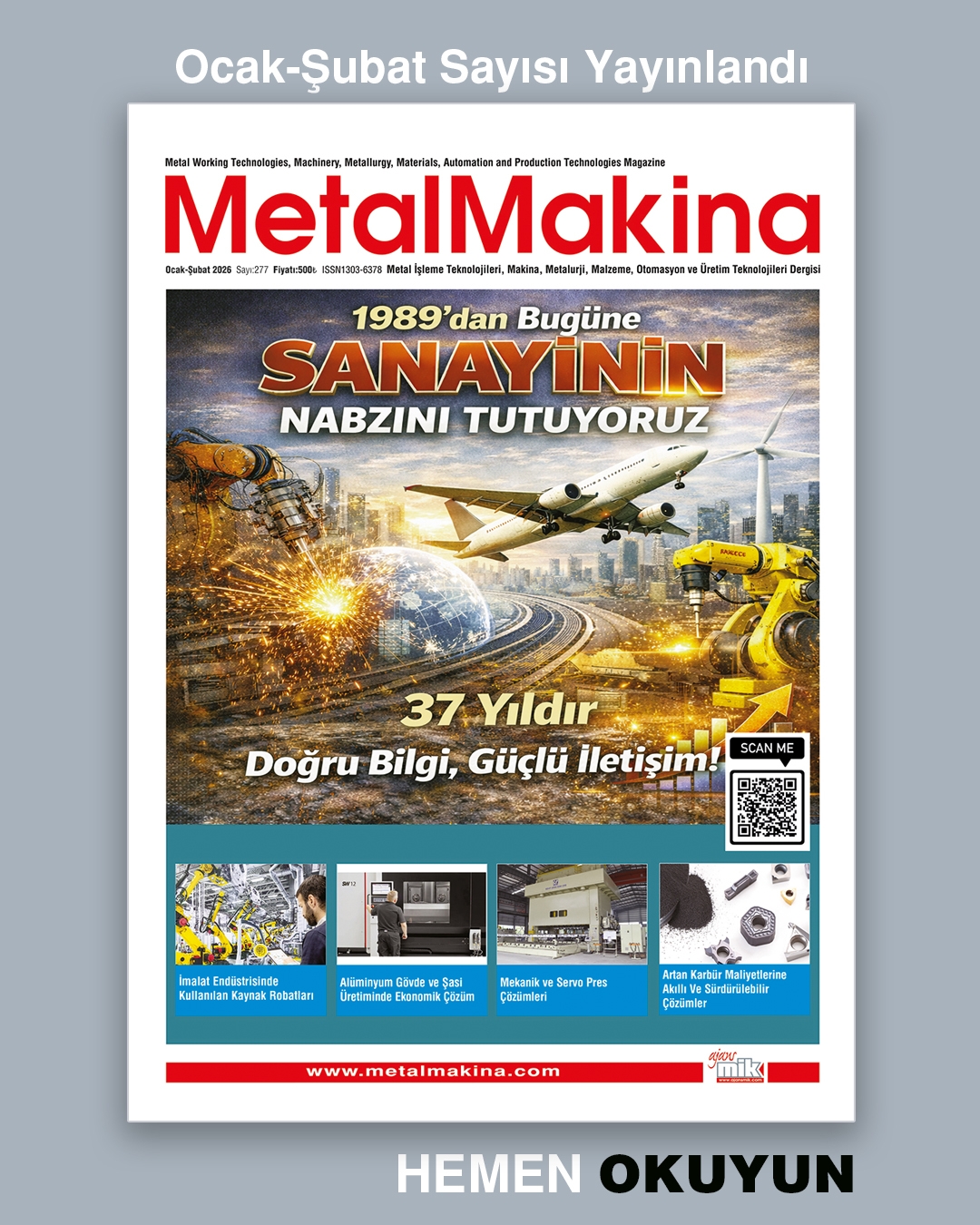 Metal ve makina sektöründe 1989 yılından bu yana bilgi, teknoloji ve sanayi gündemini güçlü bir içerikle aktaran MetalMakina Dergisi’nin Ocak–Åžubat 2026 / 277. sayısı artık yayında!